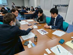 後半では、屋外広告物系・印刷物系それぞれの媒体特性を踏まえた配色を実際に考えるワークショップを実施。