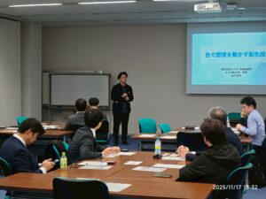 2025年11月17日(月) 日本印刷会館2F会議室にて、東青協11月度定例会セミナー「色で感情を動かす配色設計:現場で使える色の法則」セミナーが開催されました。講師に株式会社カラボ代表取締役立川弘幸氏をお招きし、39名が参加しました。